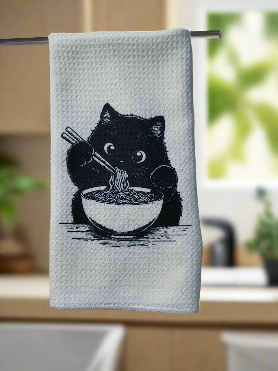This adorable design is for all you cat loving ramen noodle enthusiasts out there. This vintage cat towel is the perfect home décor gift for cat lovers.